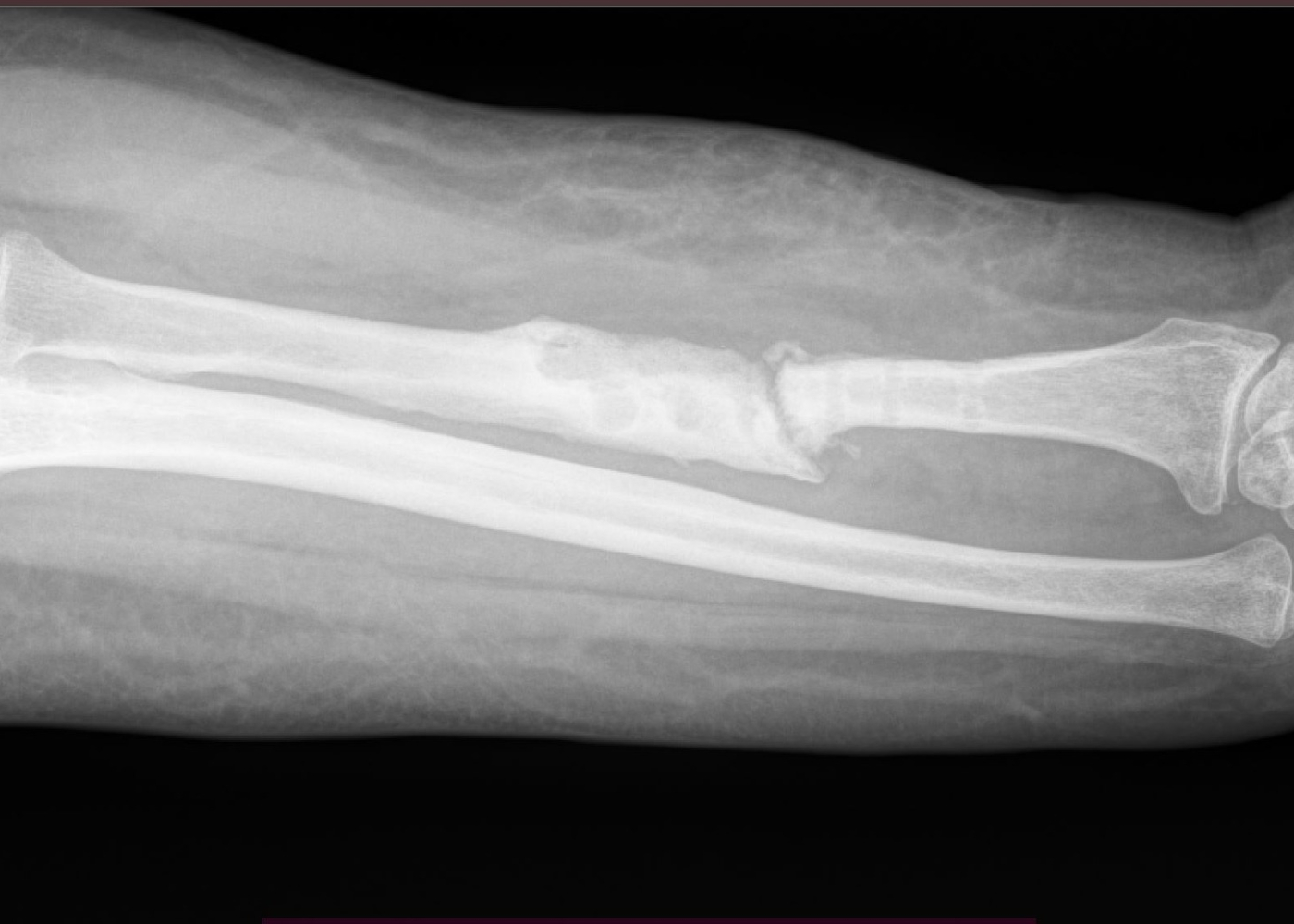 Կատարված հետազոտությունների հիման վրա տղամարդու մոտ ախտորոշվել է ոսկրային դեֆեկտ, ոսկրի, մկանների, ջլերի և նախաբազուկի կարճացում, հոդի ֆունկցիայի խանգարում։ Բուժառուն հոսպիտալացվել է Վնասվածքաբանության և օրթոպեդիայի բաժանմունք՝ ստացիոնար բուժում ստանալու նպատակով։