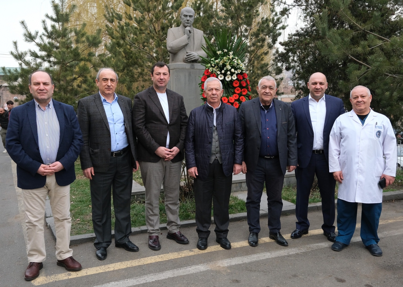 Գրքի շնորհանդեսին ներկաները ծաղկեպսակ դրեցին հիվանդանոցի հիմնադիր Ալեքսանդր Միքայելյանի հուշարձանի առաջ։