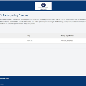 Հպարտությամբ հայտնում ենք, որ «Միքայելյան» համալսարանական հիվանդանոցը ընդգրկվել է Կրոնի և խոցային կոլիտի եվրոպական կազմակերպության (ECCO) ծրագրում՝ որպես աղիքների բորբոքային հիվանդութունների մասնագիտական կենտրոն։