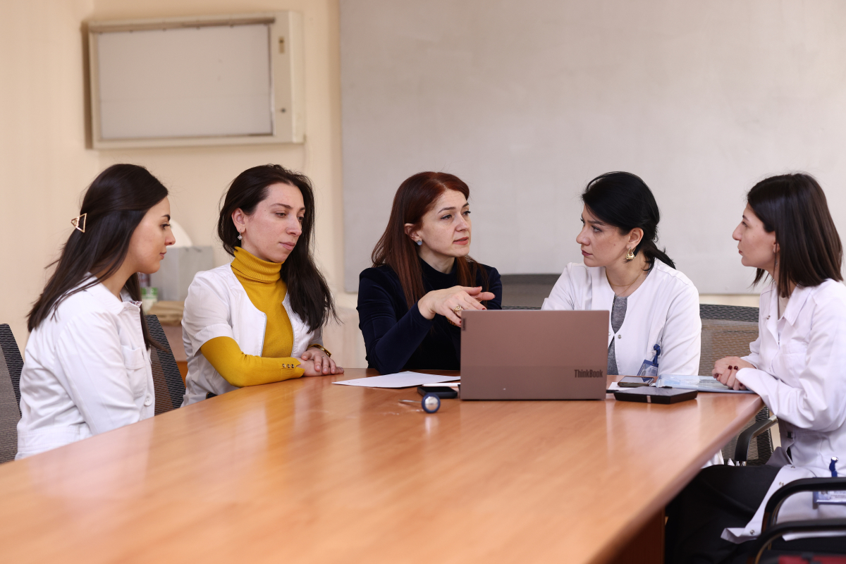 Պրոֆեսոր Հերլոպյանը նյարդաբան Սոֆիյա Խաչատուրյանի և հիվանդանոցի մուլտիդիսցիպլինար թիմի հետ մասնակցել է բարդ կլինիկական դեպքերի քննարկմանը։